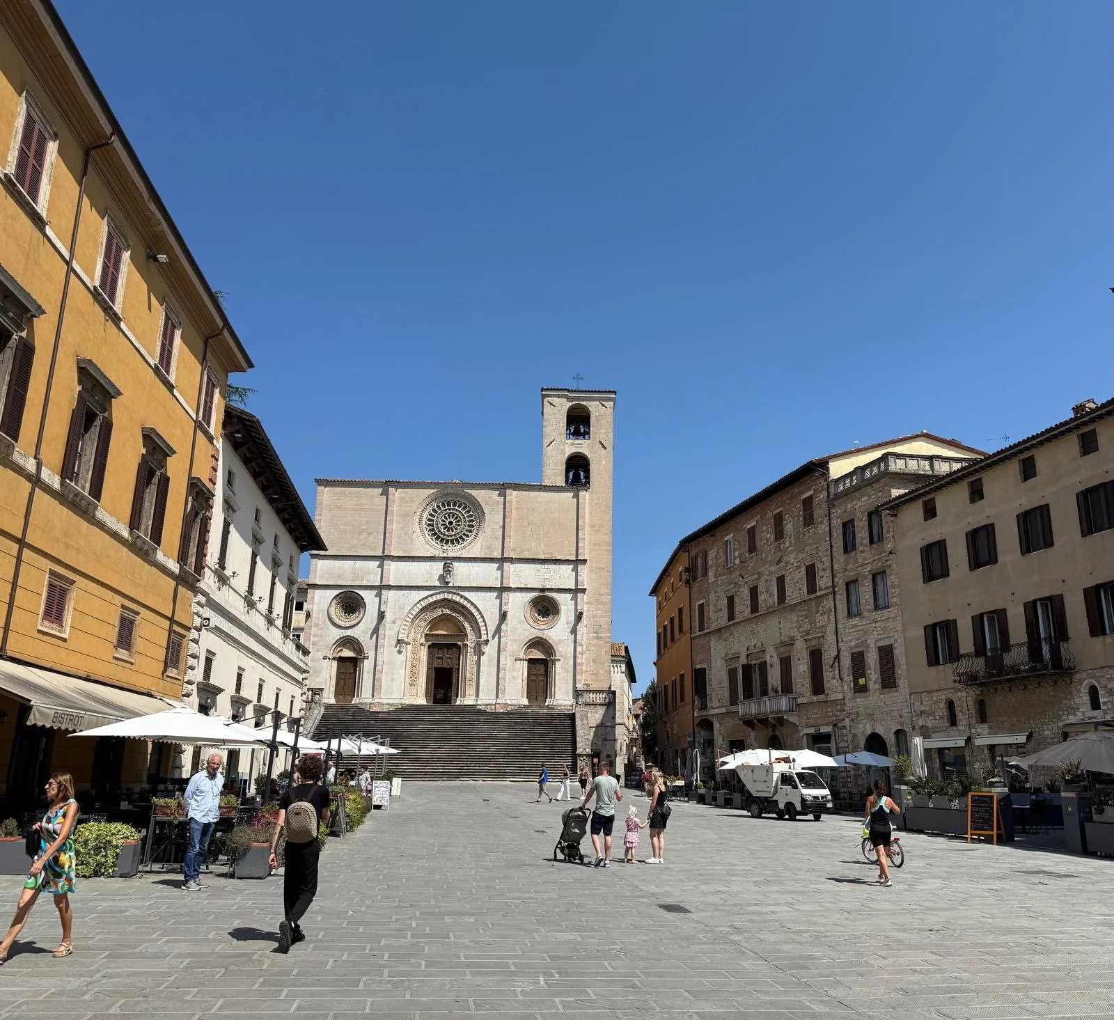 Todi is a picturesque medieval hill town in the Umbria region of central Italy, perched on a hill with commanding views of the Tiber River valley. It's often considered a quintessential example of an Italian hill town, known for its tranquil atmosphere, well-preserved historic centre, and rich cultural heritage.